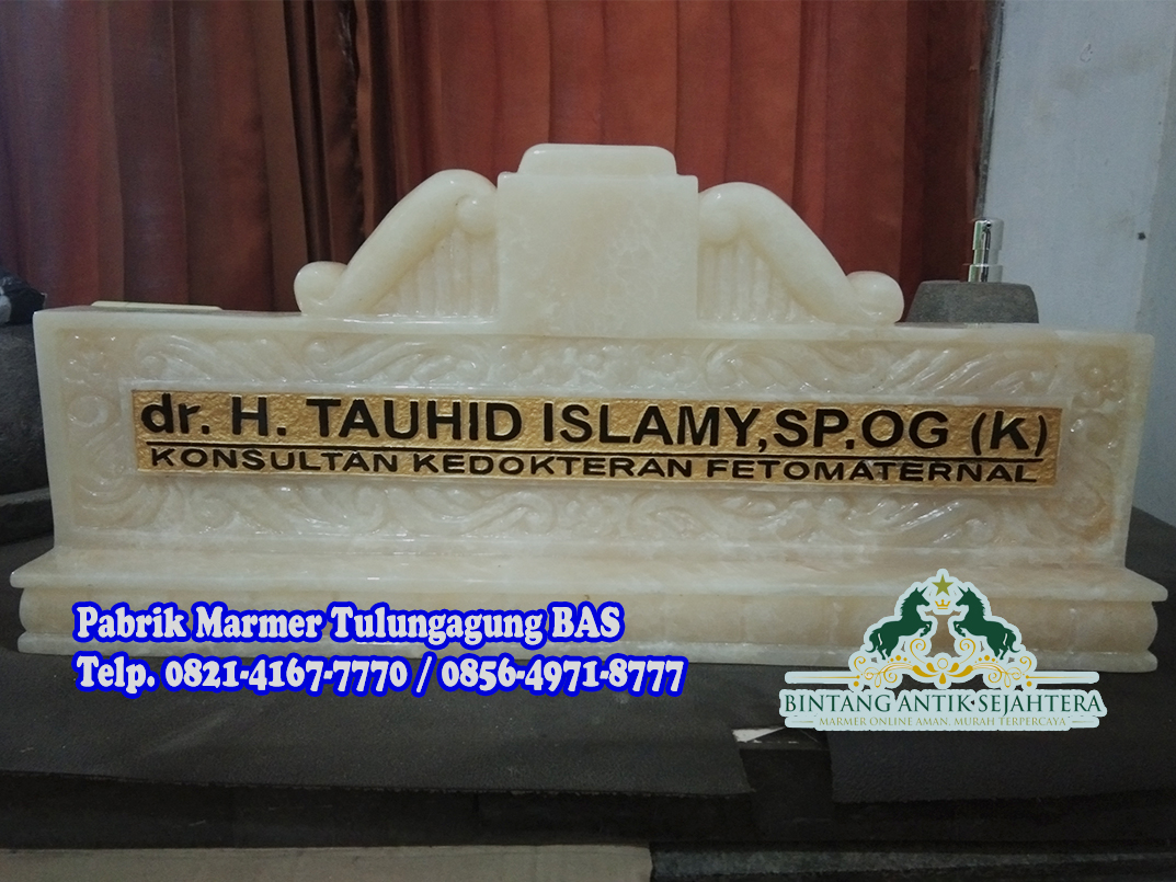 Harga Hubungi CSPapan Nama Pejabat Onyx – Papan Nama Meja adalah salah satu produk hasil dari UD. Bintang Antik Sejahtera yang biasanya dicari oleh para pimpinan perusahaan atau pejabat. Papan yang kami produksi ini kualitas premium. Telah banyak model papan nama meja yang kami produksi dengan berbagai macam model, bahan dan variasi. Papan Nama Meja Ukir ini… selengkapnya