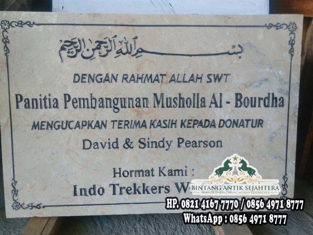 Untuk anda yang sedang mencari prasasti peresmian anda bisa memesan prasasti pada kami. Kami merupakan pengrajin prasasti marmer dan granit yang sudah sangat berpengalaman. Dapatkan keuntungan dan jaminan keaslian produk hanya di Pabrik Marmer Tulungagung BAS. Berikut ini beberapa keuntungan jika memesan prasasti pada kami adalah: