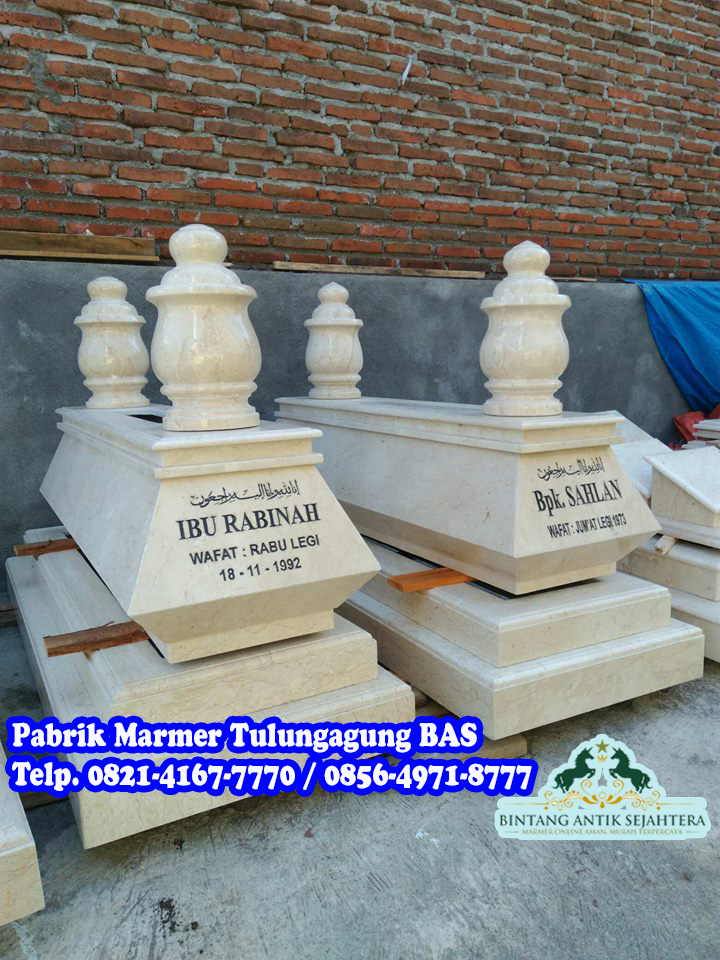 Kami akan menawarkan kerajinan marmer tentang Makam Marmer Tulungagung , makam ini memiliki design yang sangat bagus oleh sebab itu banyak orang yang memesan makam yang satu ini . Model Makam Marmer Bokoran ini memiliki design jawa kuno , banyak pemakaman orang-orang dulu yang memakai design ini. Makam Bokoran ini mempunyai cirikhas di bagian badan makam ada lekukan lancip. Makam ini sangat popular dipesan di daerah Jawa Timur dan Kalimantan.