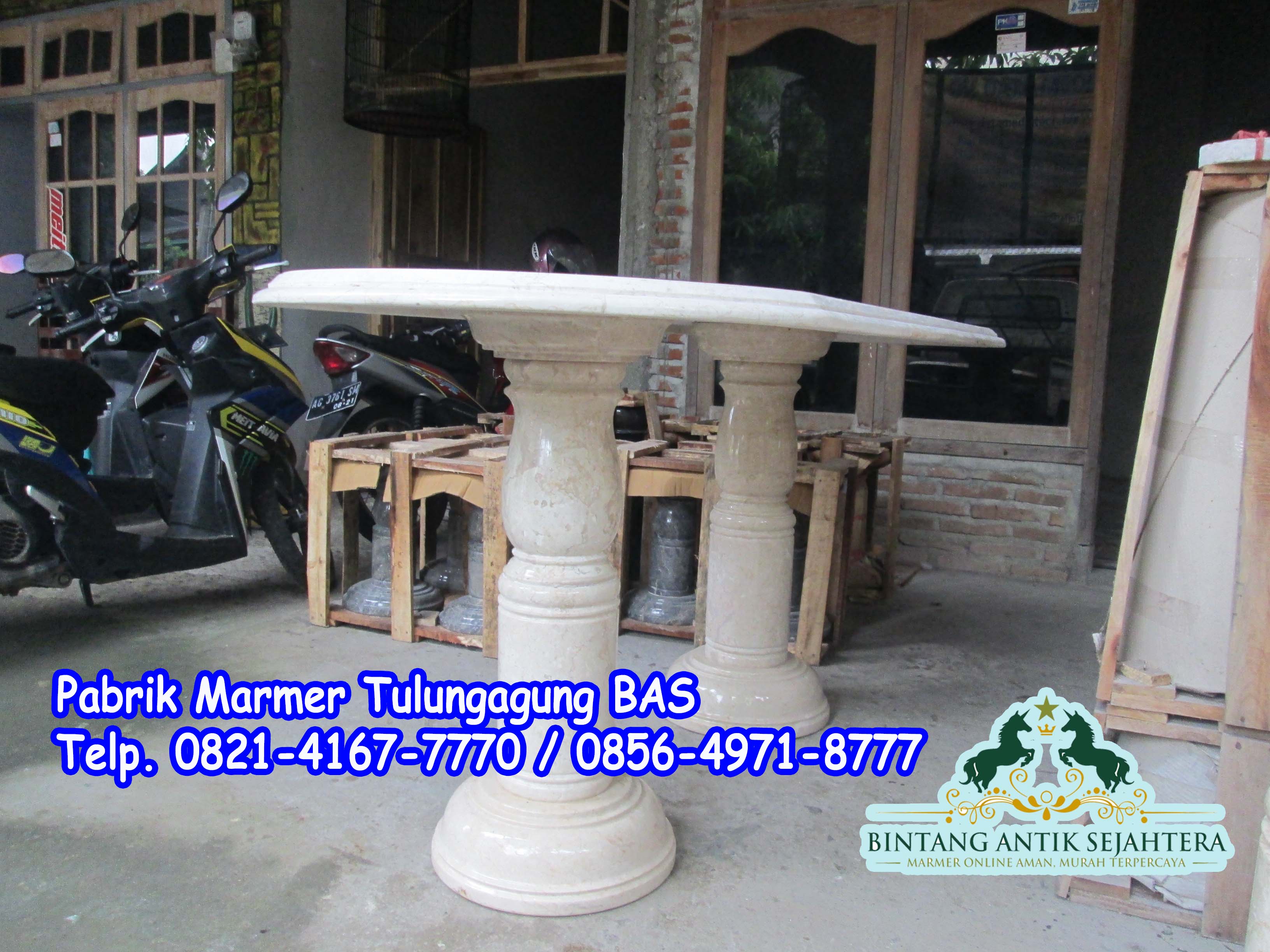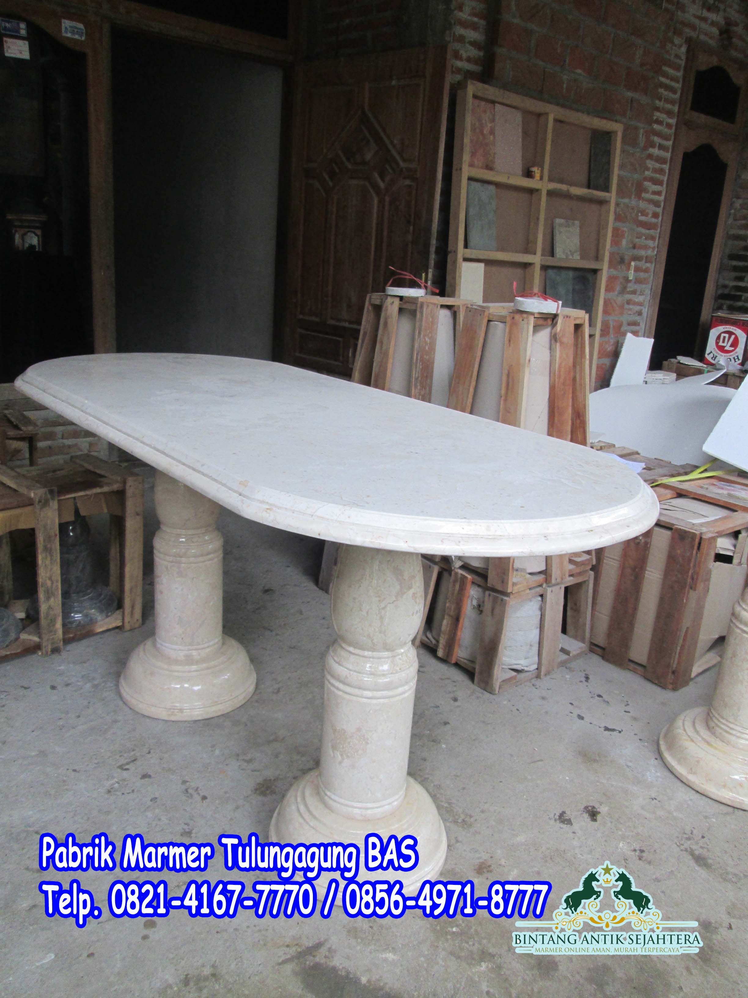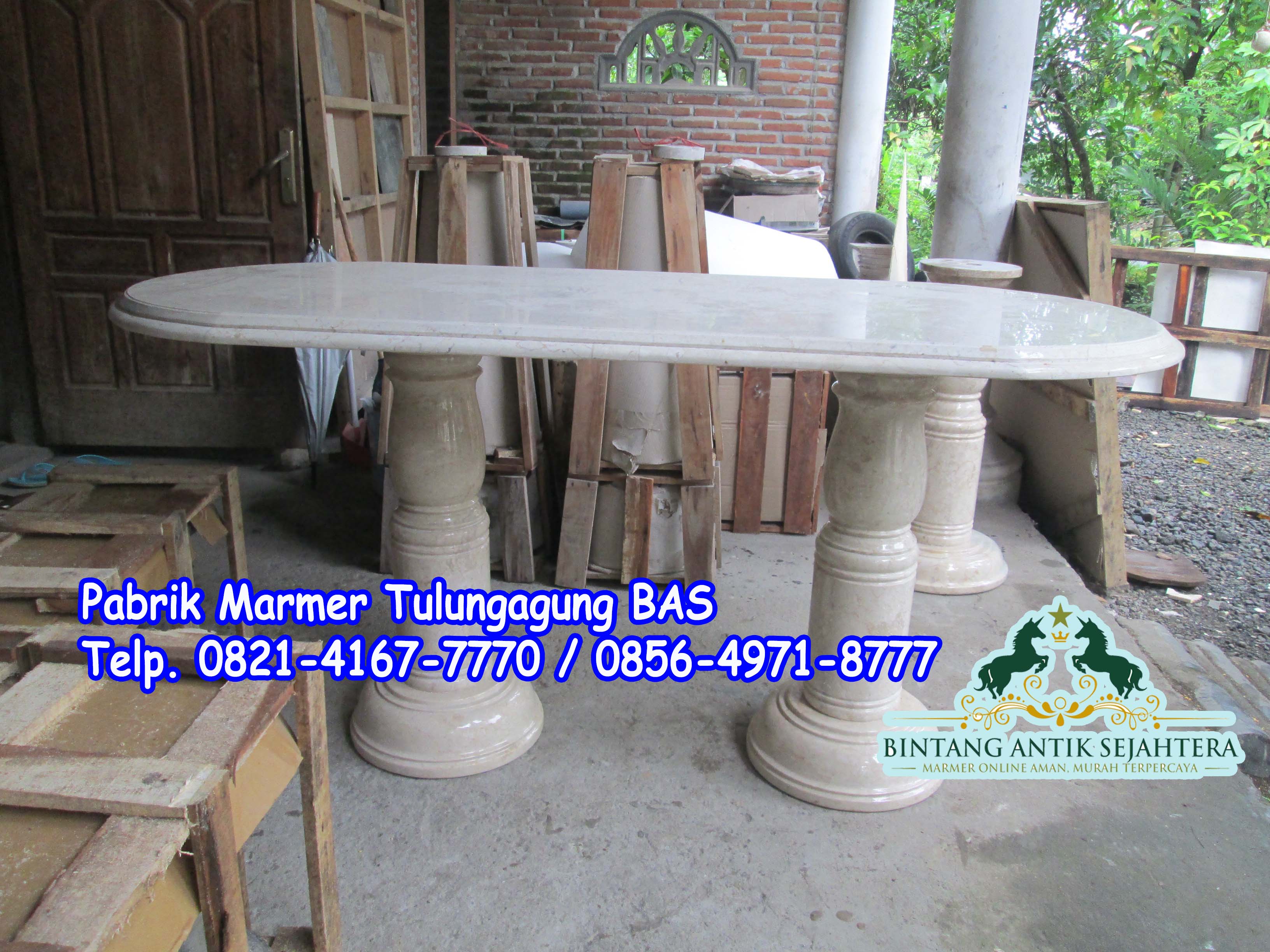 Pabik Marmer Tulungagung selalu memberikan inovasi dan kreatif pada setiap bidang kerajinan yang kami kerjakan terutama pada kerakjinan yang kami paparkan sekarang ini yaitu Meja Makan Oval yang memakai bahan marmer ( Kawi Agung ) kerajinan tersebut sangat banyak mengunakan bahan yang satu ini karena bahan yang satu ini sangatlah bagus dan iya memiliki putih kecreaman dan memiliki serat yang terlalu sedikit . Yang dipesan Khusus oleh ibu Yenny yang berada didaerah Tangrang- Banten . Beliau mempercayakan kepada kami untuk membuat meja makan yang berbahan marmer putih kearah Cream tersebut . Beliau meminta kepada Pabrik Marmer Tulungagung dengan ukuan Standrtnya dan iya meminta kursi 8 biji. Tentunya harga yang kami patok tidak sama , kalau yang kami produksi tersebut memakai 6 kursi . Dan Alhamdulilahnya pada hari ini Meja makan tersebut sudah jadi dan beseok minggu akan dikirim menuju ke Tangrang Banten kerumah Ibu Yenny .