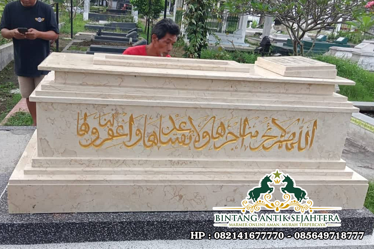 Kijing Makam Islam Marmer dengan Ukiran Spesial Kijing Makam Islam Marmer – Pabrik Marmer Tulungagung sangat gencar untuk melakukan inovasi-inovasi terbaru dalam pembuatan kerajinan marmer salah satunya kijing makam. Membuat model-model terbaru adalah hal yang selalu kami lakukan agar menjadi trend setter . Berbagai model makam telah kami produksi dengan model-model yang menarik tentunya beda… selengkapnya